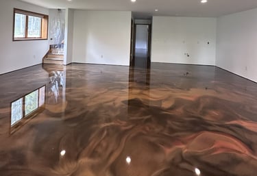 Beautify your home with our stylish concrete coatings, from Polymer Decorative Flake and single-color floor options to Custom artisan Metallic Resin installations that add a unique touch to any area.
