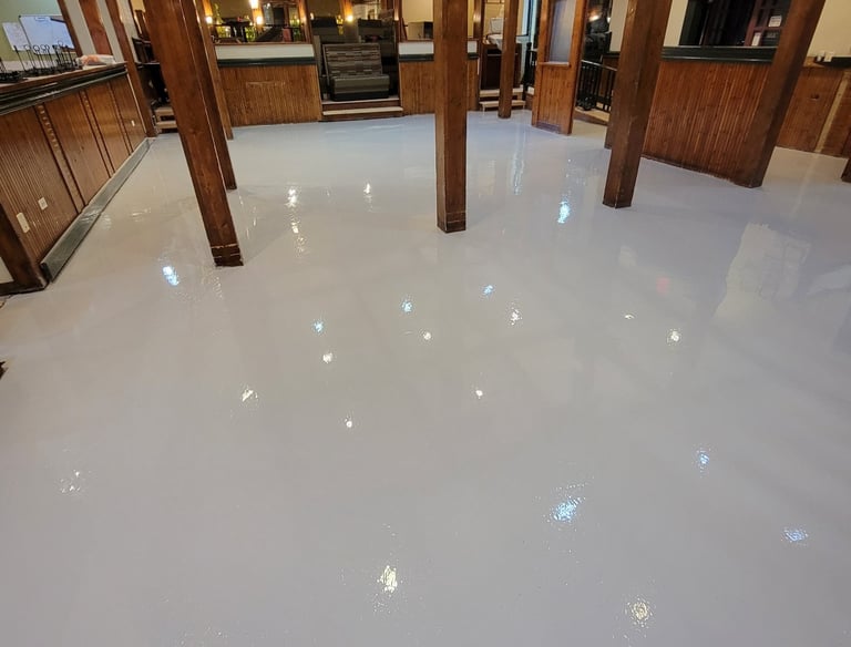 Beautify your home with our stylish concrete coatings, from Polymer Decorative Flake and single-color floor options to Custom artisan Metallic Resin installations that add a unique touch to any area.